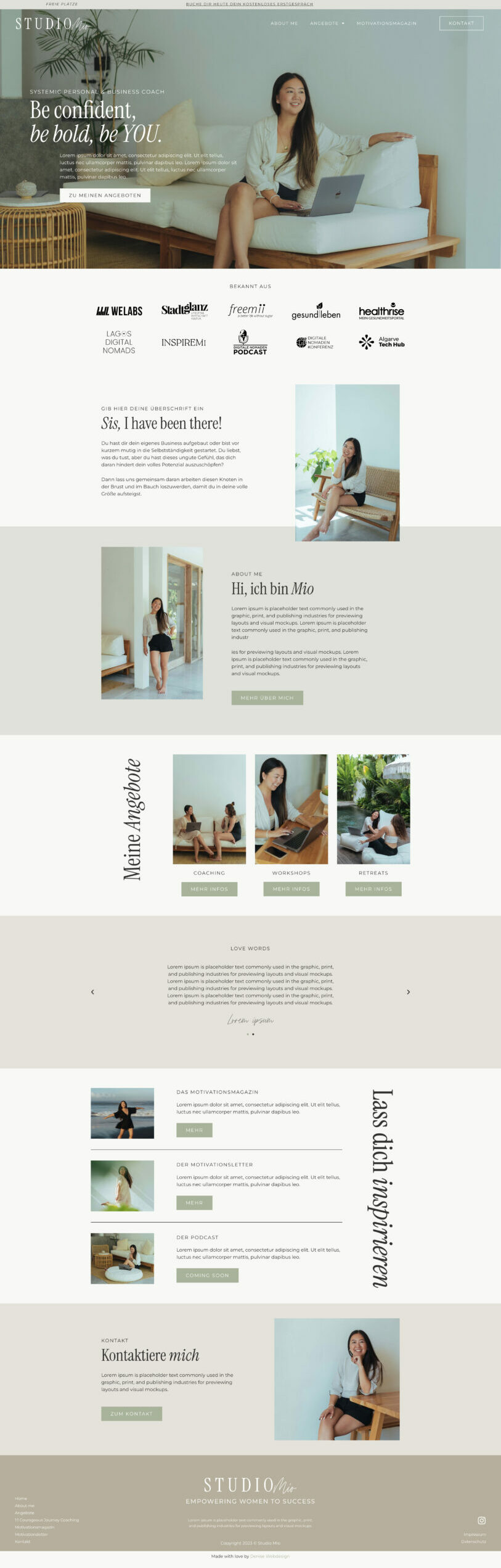 „Mit Denise zusammenzuarbeiten war ein reines Vergnügen. Sie hat den gesamten Webseiten-Prozess nahtlos und wunderschön gestaltet – meine Webseite ist zu einem echten Hingucker geworden, den ich absolut liebe. In nur drei Tagen hat Denise meine Ideen und Vorstellungen grandios verwirklicht. Das Feedback, das ich für meine Webseite erhalte, ist durchweg positiv. Ich freue mich auf jede zukünftige Zusammenarbeit mit ihr und empfehle sie uneingeschränkt allen Frauen, die selbst nicht die Zeit haben, eine Webseite zu erstellen. Unsere Kommunikation hat Spaß gemacht und es war einfach mich mit ihr auszutauschen; bei Rückfragen konnte ich schnell mit einer hilfreichen Antwort oder einem erläuternden Video rechnen. Verdiente fünf Sterne – wie bei einer Google-Bewertung.“